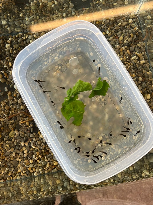 Die Kaulquappen blieben in der ersten Zeit des Schlüpfens zuerst noch in einem kleinen Behälter.